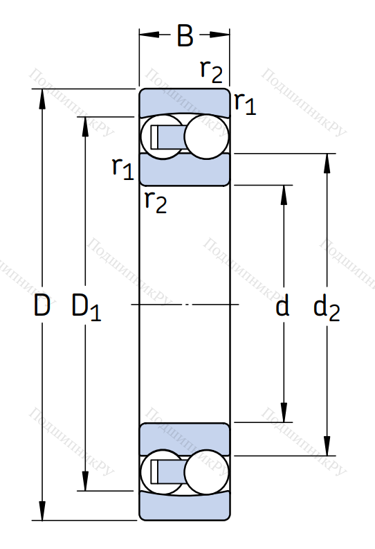 Конструкции этого типа, производящиеся фирмами FAG, KOYO, NSK, SKF, SNR, имеют два ряда шарикоподшипников, внешнюю выпуклую шину и внутреннюю обойму, в которой находится монтажное цилиндрическое отверстие. Воспринимают радиальные и осевые вектора приложения, включая двустороннюю нагрузку по оси (она не должна превышать 20% от лучевой).