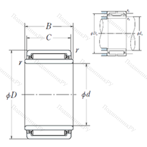 Ширина наружной обоймы (C) - 25 мм.