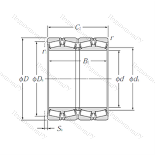 Подшипник роликовый радиально-упорный T-E-48290D/48220/48220D у которого конструкционной особенностью являются ролики в форме конуса и разъемный корпус. Изделие также может быть укомплектовано наружным кольцом с упорным бортиком или большим углом, двухрядными или четырехрядными роликоподшипниками, утолщенной внешней шиной.