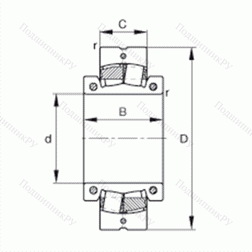 - 23148K / Условное обозначение, двухрядный радиальный сферический роликоподшипник, неразъемный